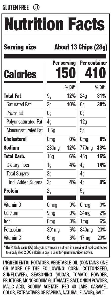 Herr's Ketchup Ripple Potato Chips are a tasty way to satisfy your hunger between meals. They feature a delicious combination of the finest ingredients made with a time-tested recipe, creating a flavorful snack that is sure to please. These ranch potato chips are gluten-free. They add extra crunch to your lunchtime sandwich. Put some out for parties or share them on family movie night. They're enjoyable any time of the day. Try other fantastic flavor combinations